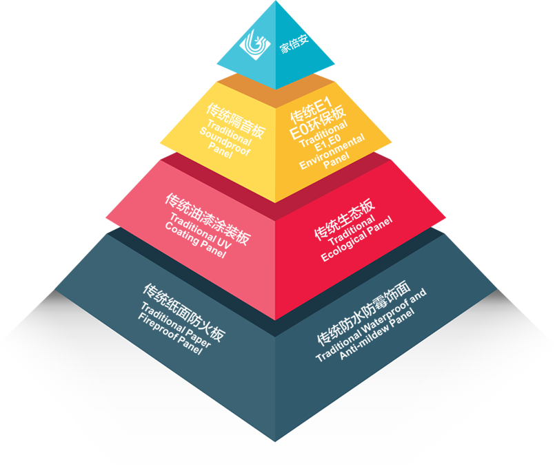 • “家倍安”使用高阻隔金屬鋁箔和高滲、超耐磨納米材料,經過高溫高壓獨特的工藝方法處理,飾面木質纖維結構更加縝密,隔音、降噪,導熱系數(shù)低,防火等級高,達到國家防火材料防火標準A2級。